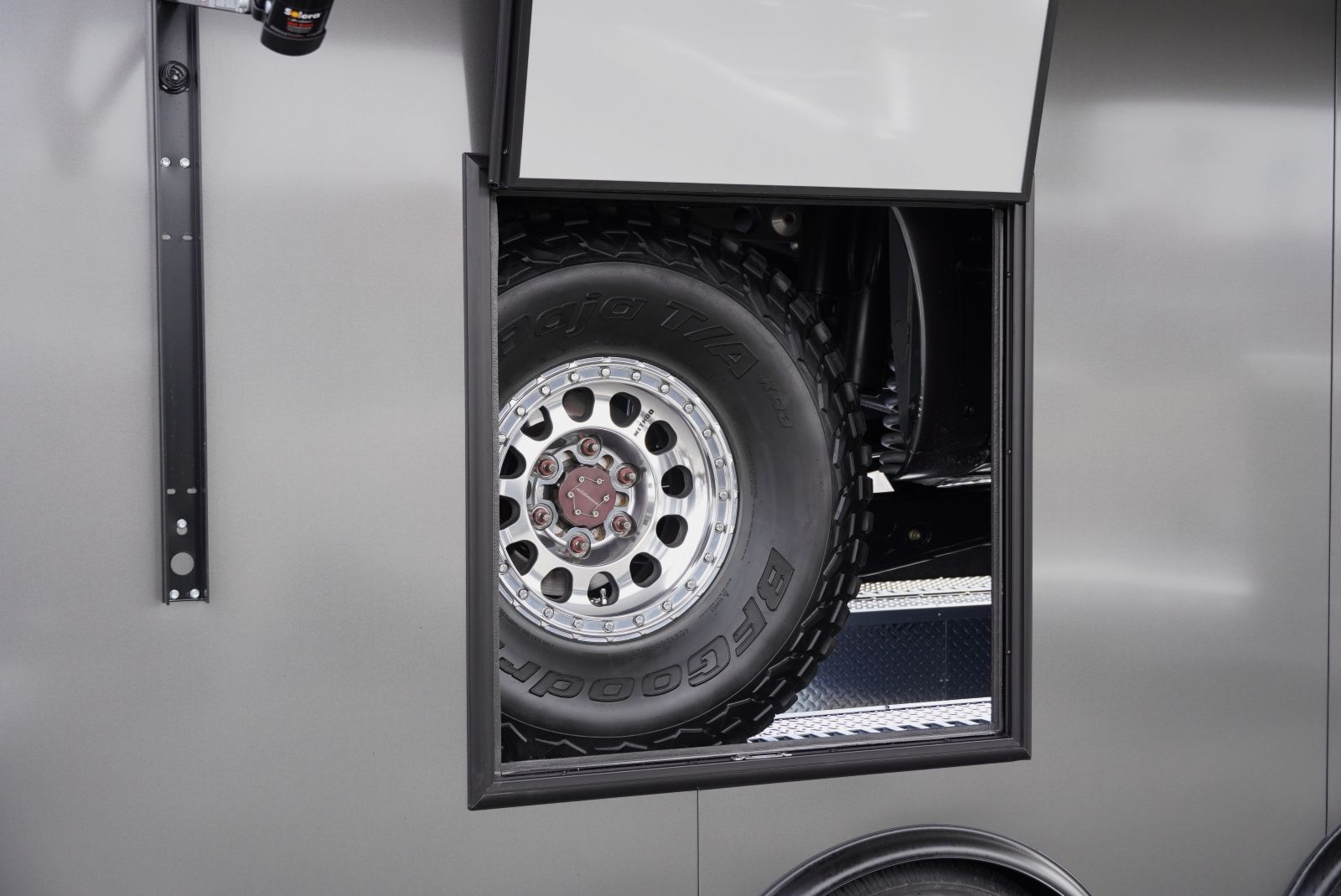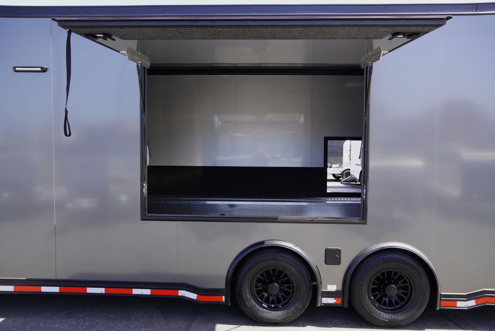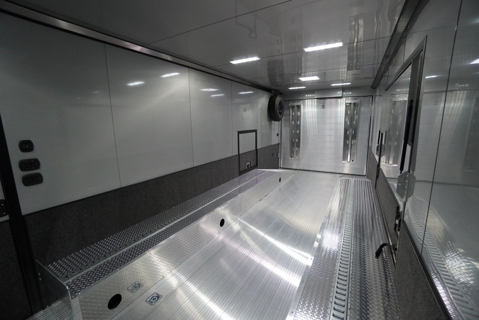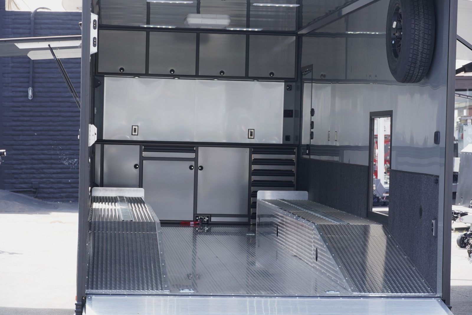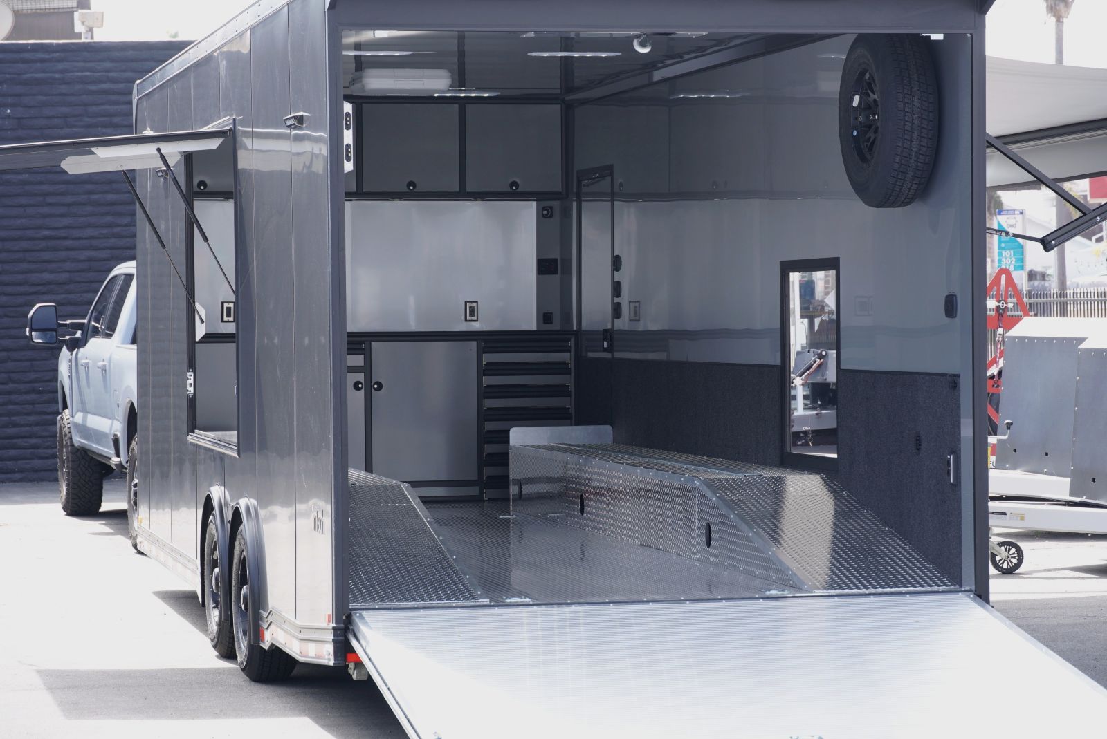 In our featured setup, we showcase a 94” wide pre-runner loading effortlessly into the trailer—no rubbing, no clearance issues, and zero compromises. The wide body kit expands the interior width, while the ramp overs provide a seamless entry angle for low-clearance or long-wheelbase vehicles, eliminating the need for wheel wells inside the trailer.