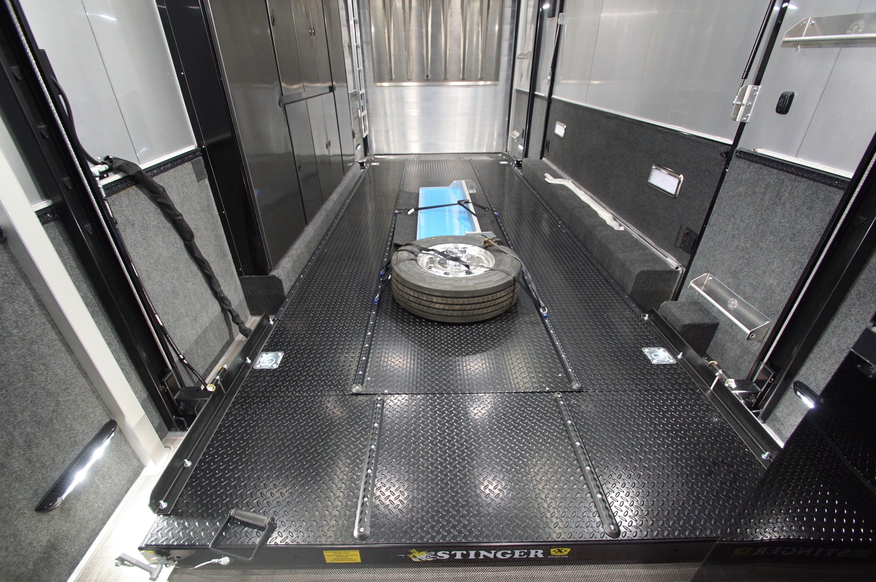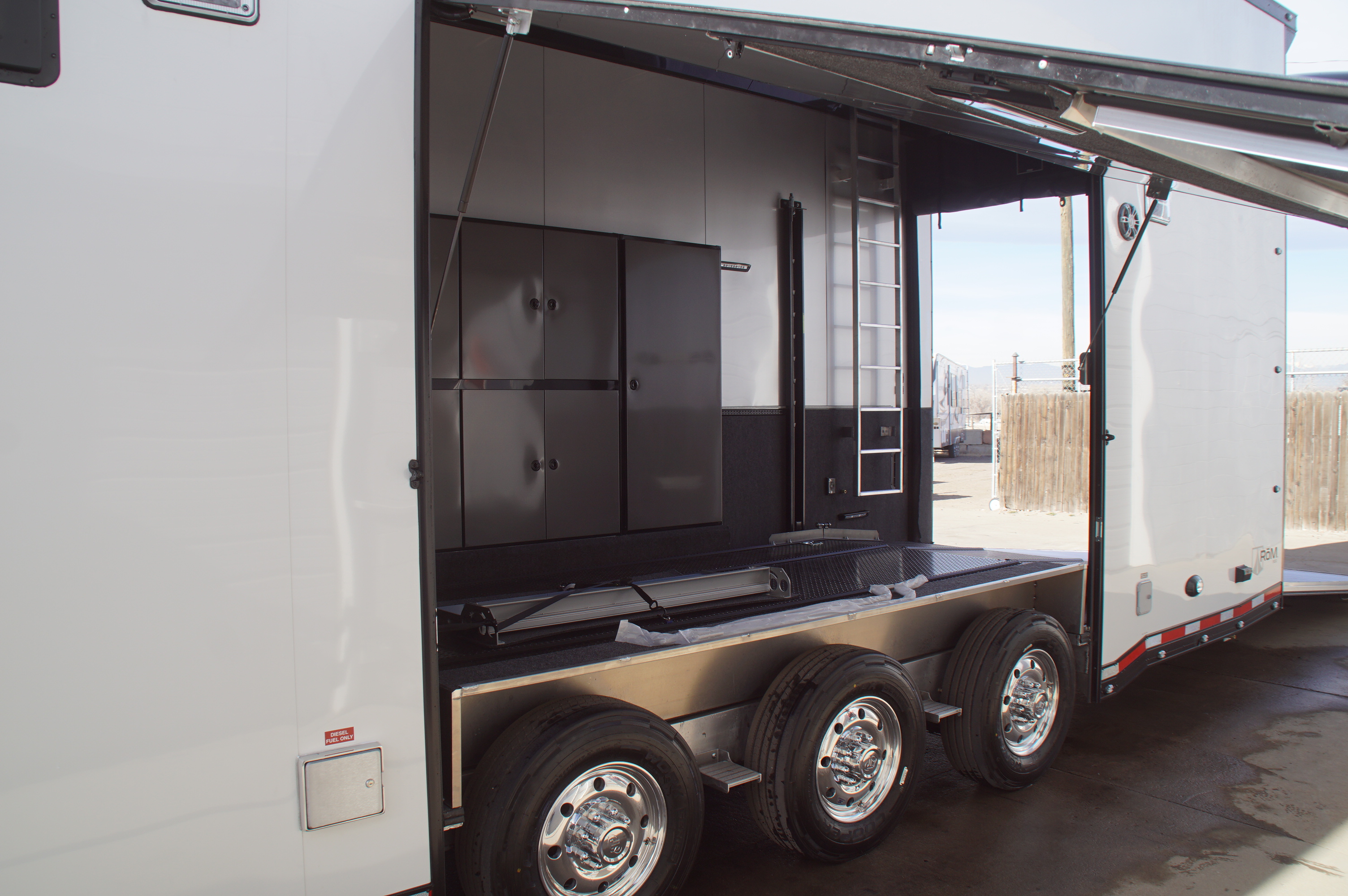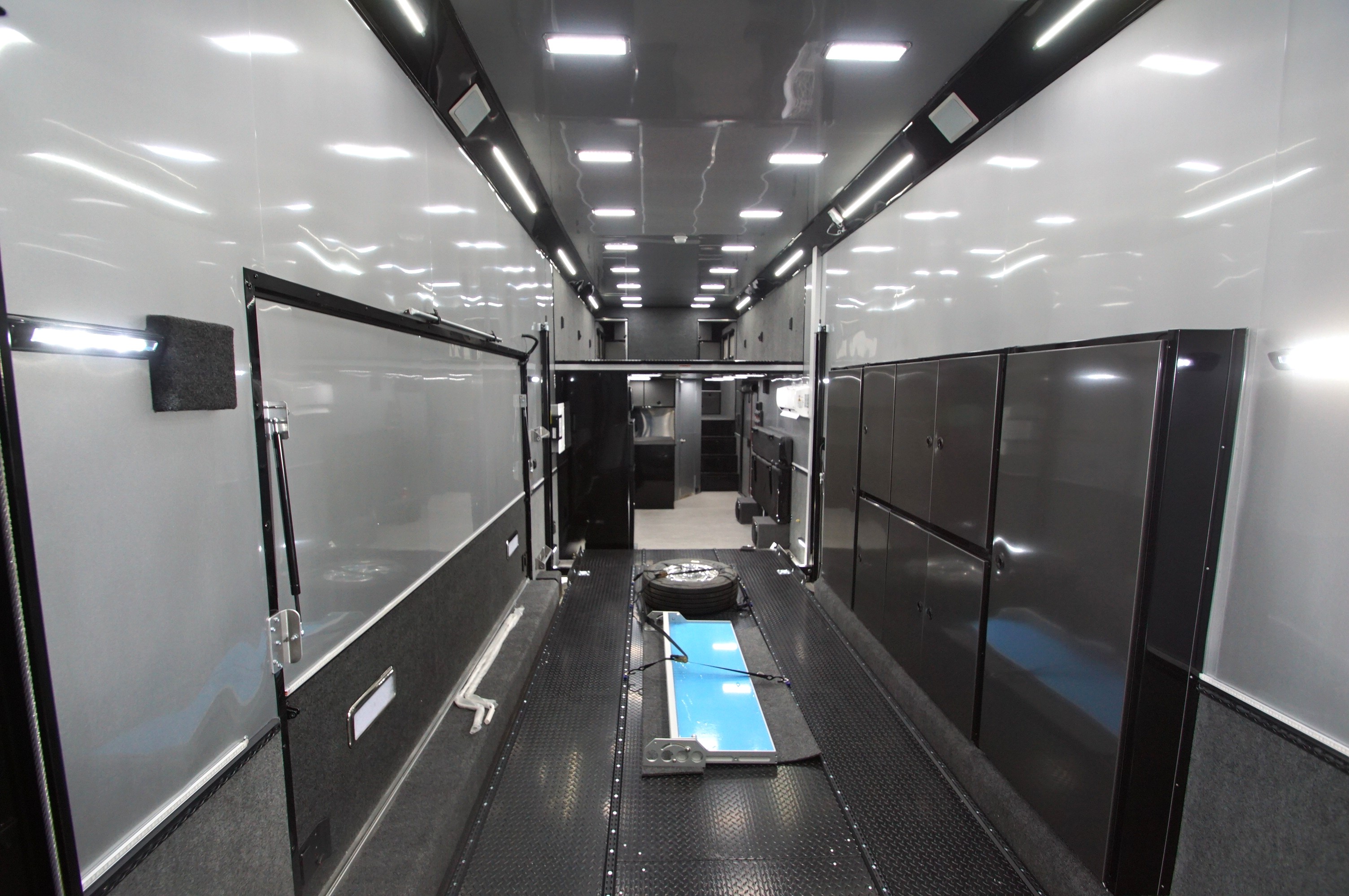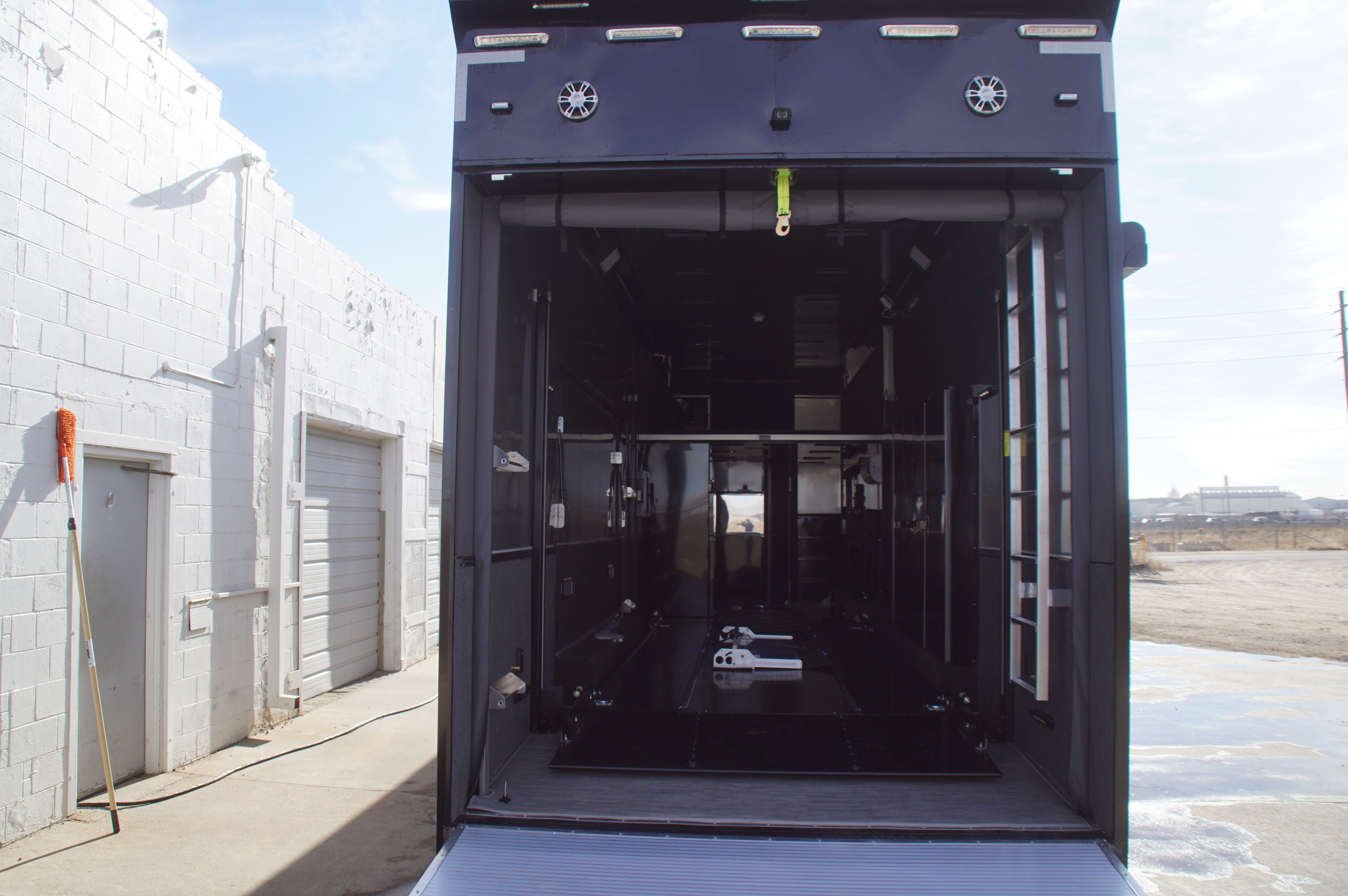 In the garage, abundant LED lighting, extensive cabinetry, and thoughtful storage solutions keep tools and gear organized and accessible. The wide body design maximizes interior space, making loading, unloading, and working around your vehicles effortless.