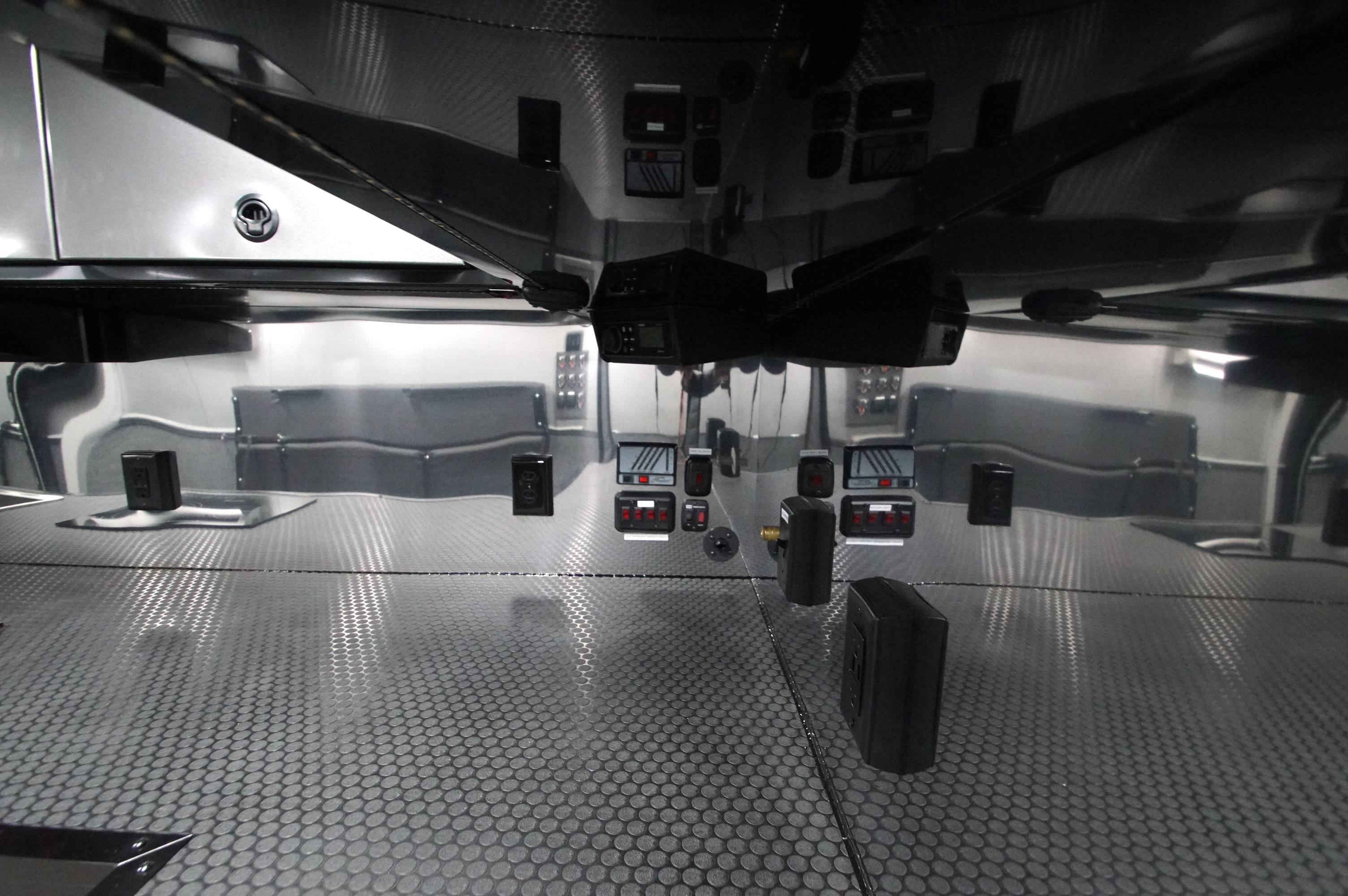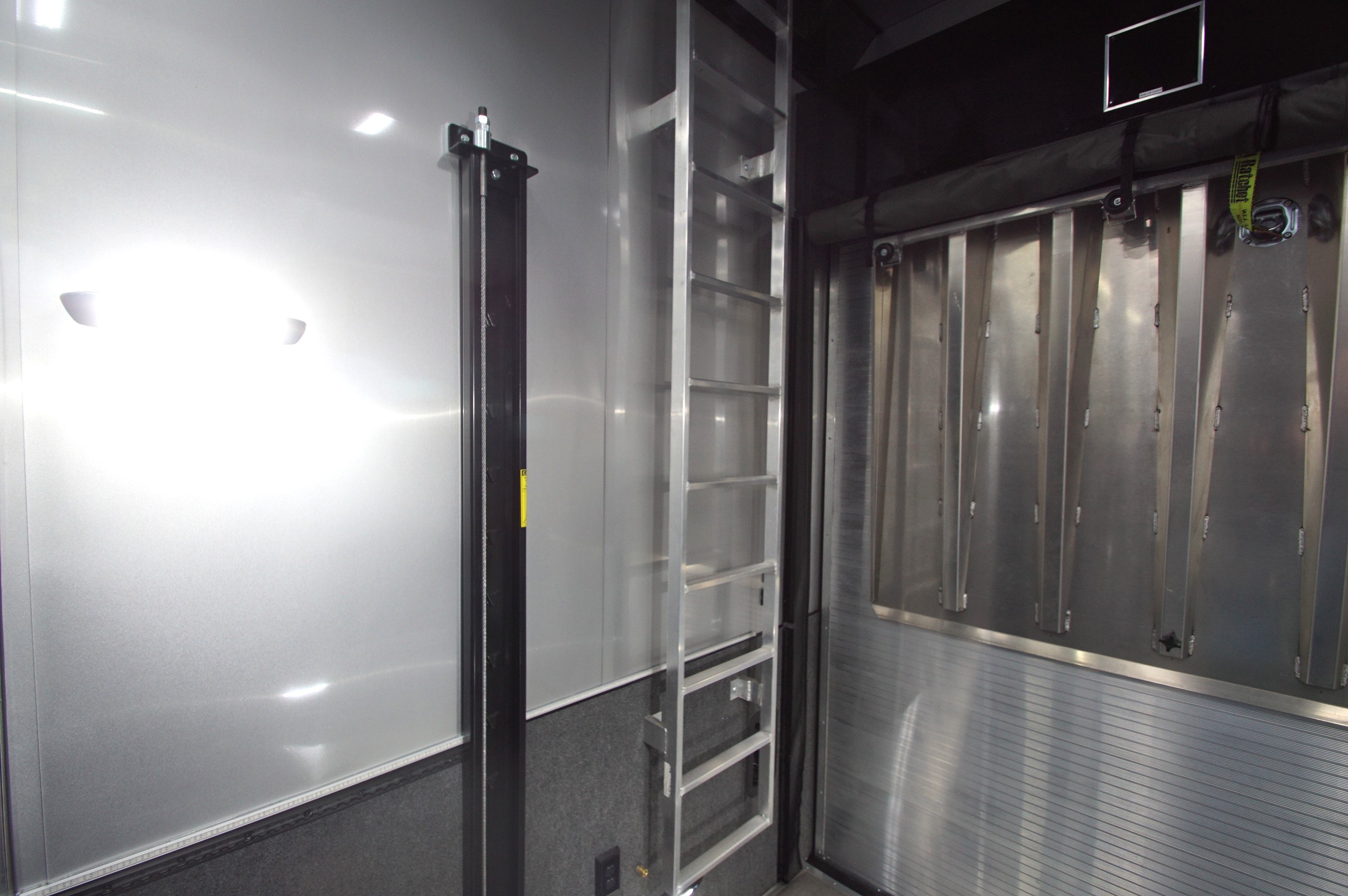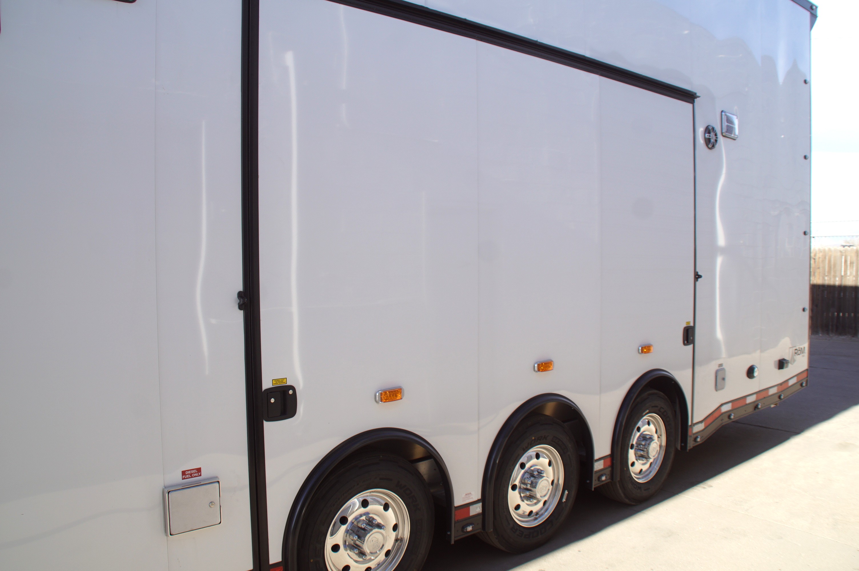 In the garage, abundant LED lighting, extensive cabinetry, and thoughtful storage solutions keep tools and gear organized and accessible. The wide body design maximizes interior space, making loading, unloading, and working around your vehicles effortless.
