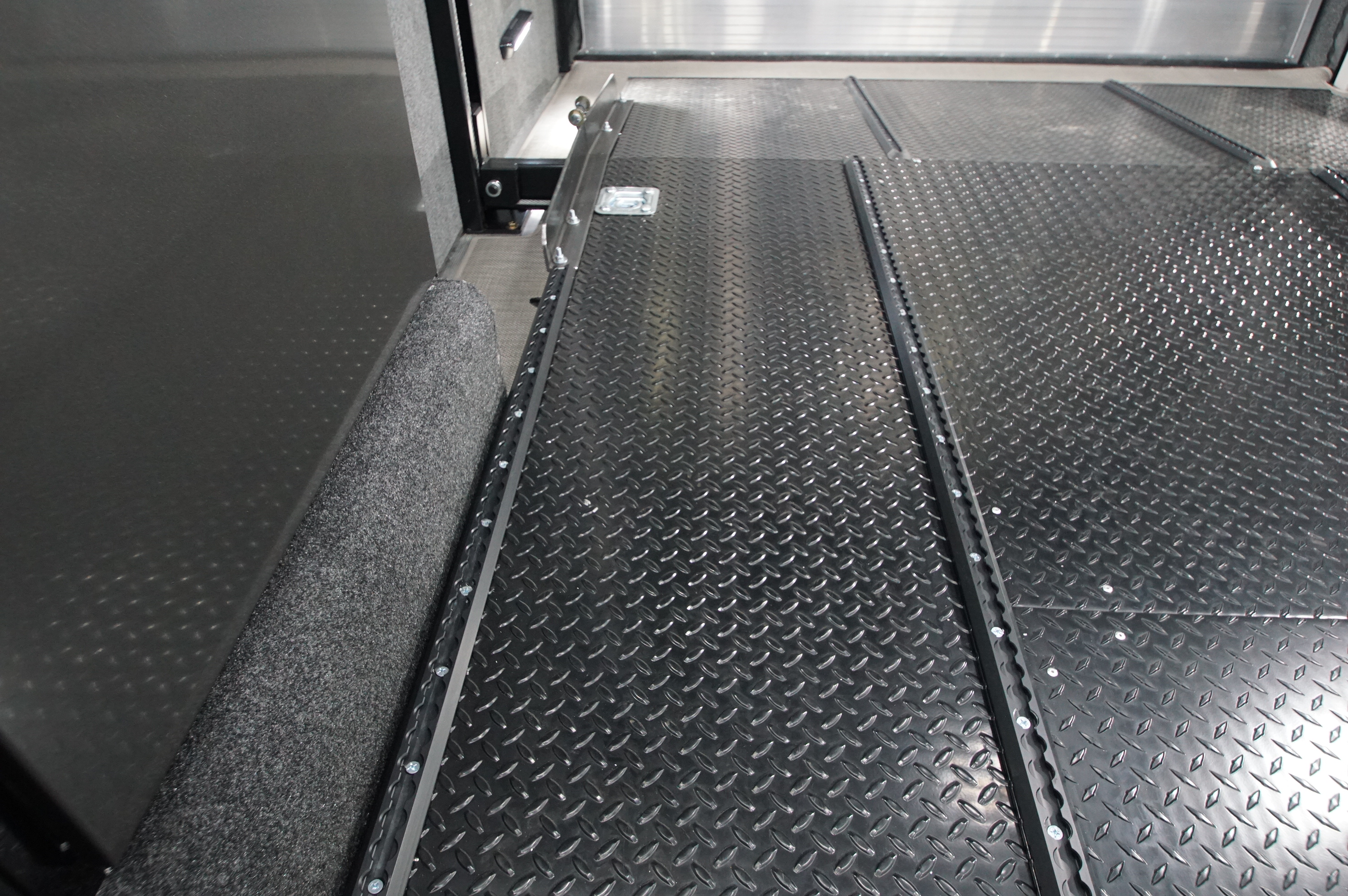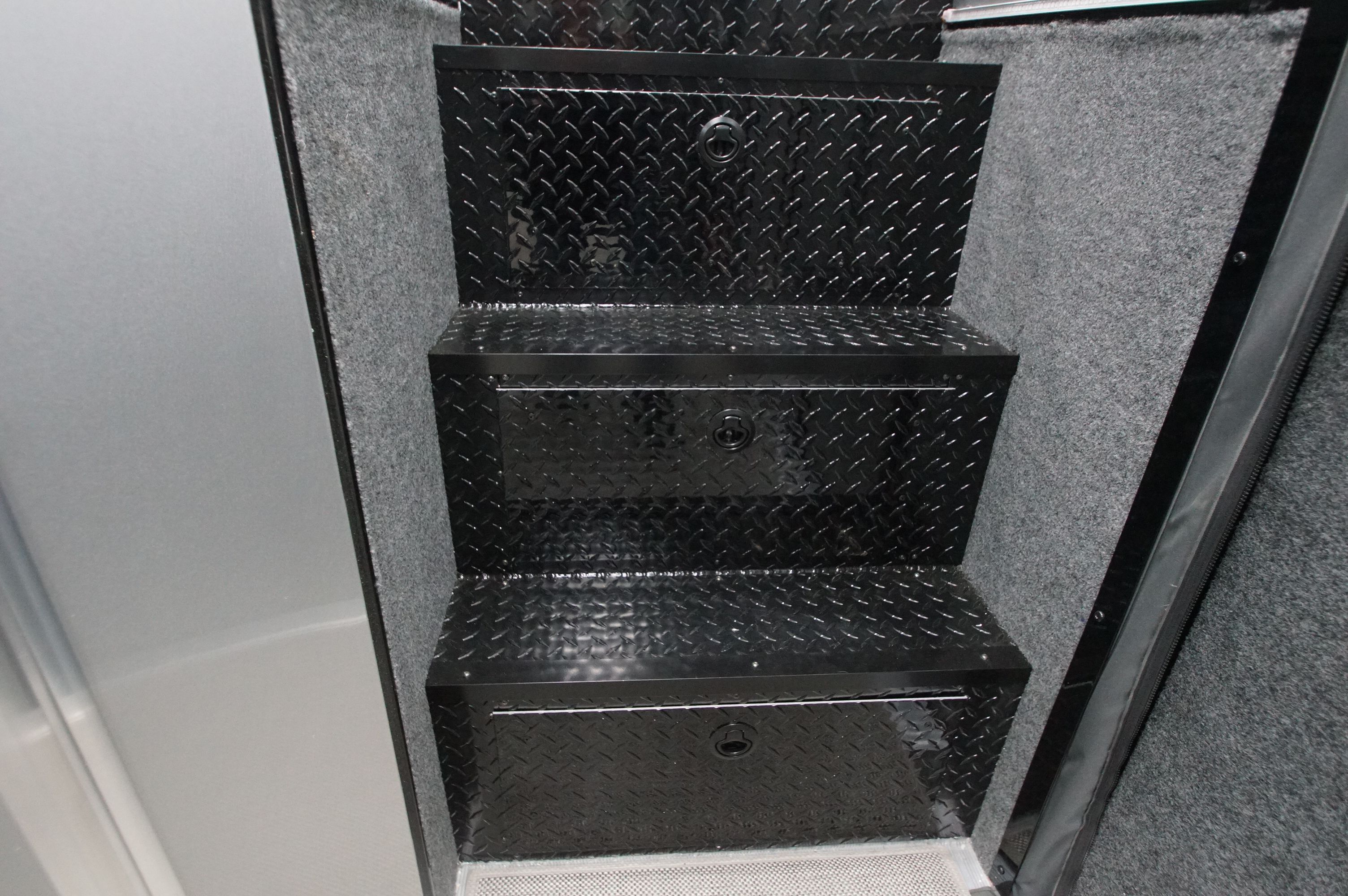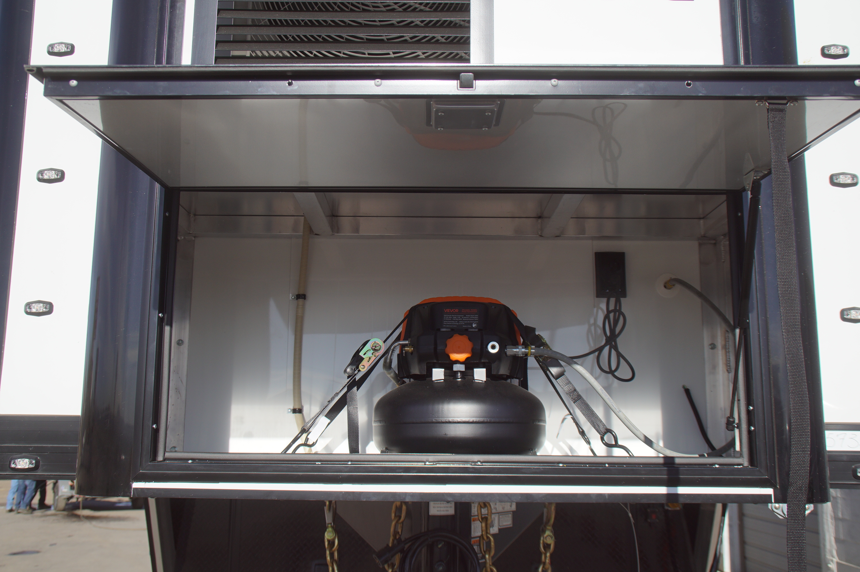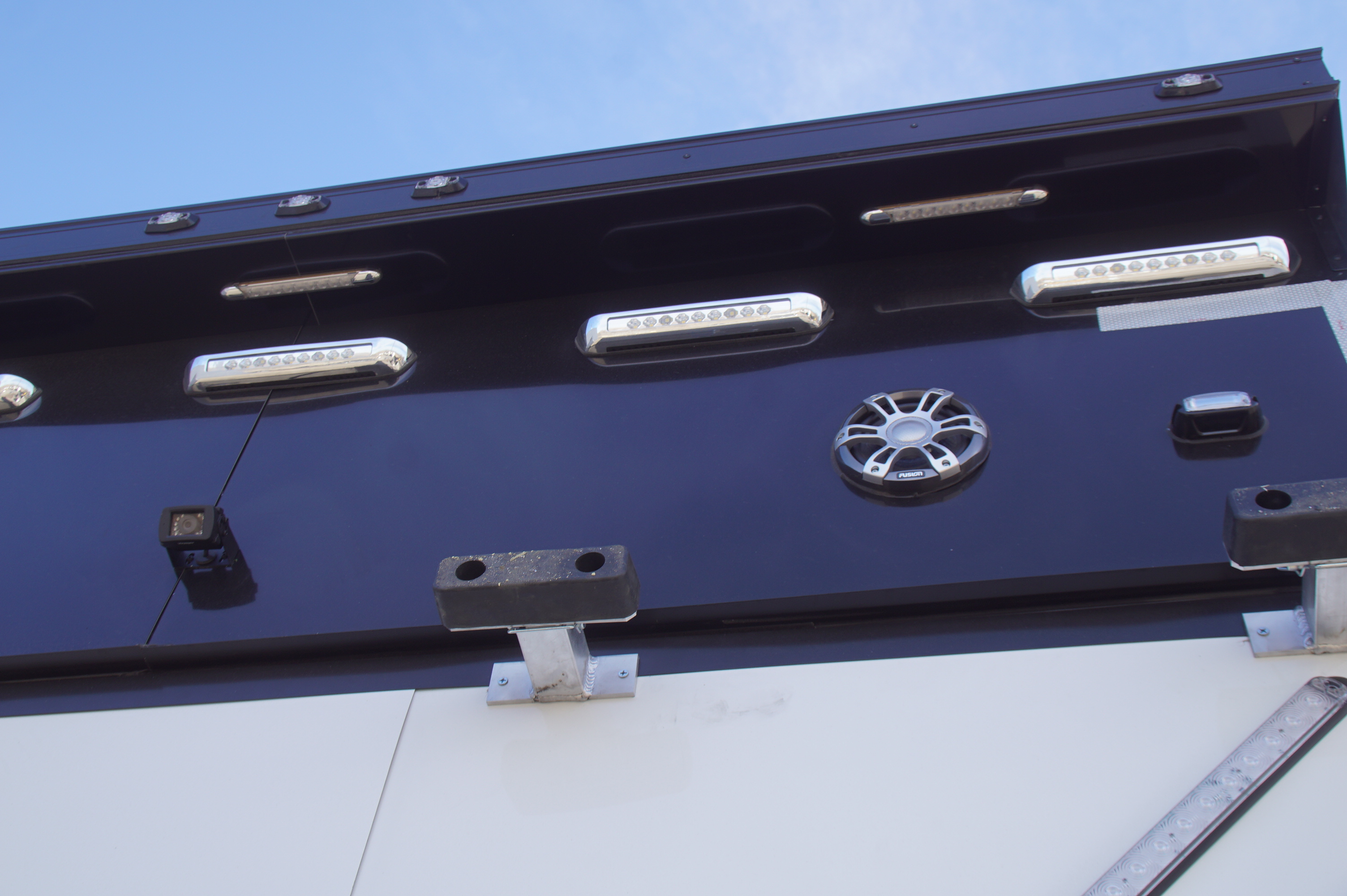 In the garage, abundant LED lighting, extensive cabinetry, and thoughtful storage solutions keep tools and gear organized and accessible. The wide body design maximizes interior space, making loading, unloading, and working around your vehicles effortless.