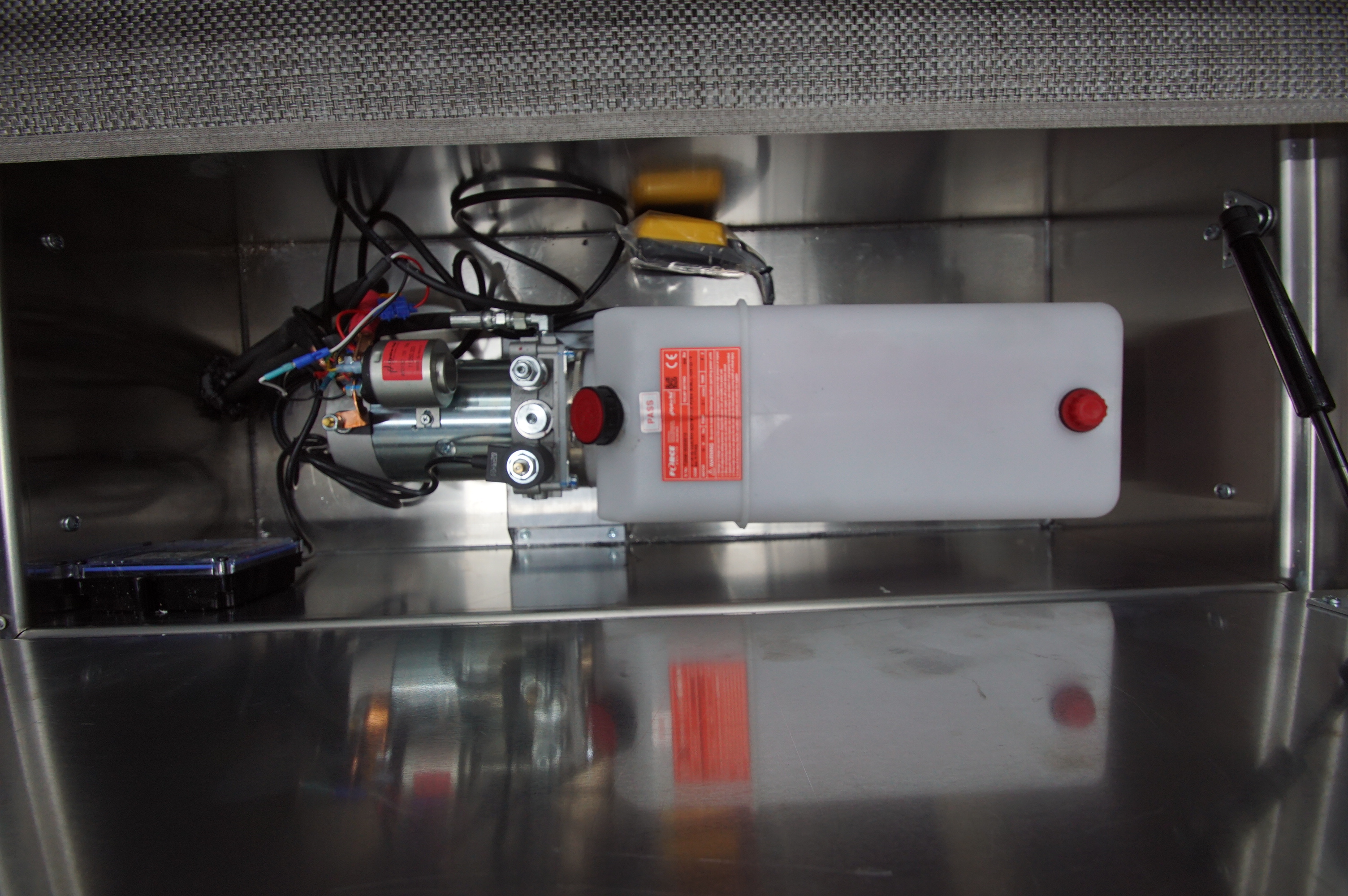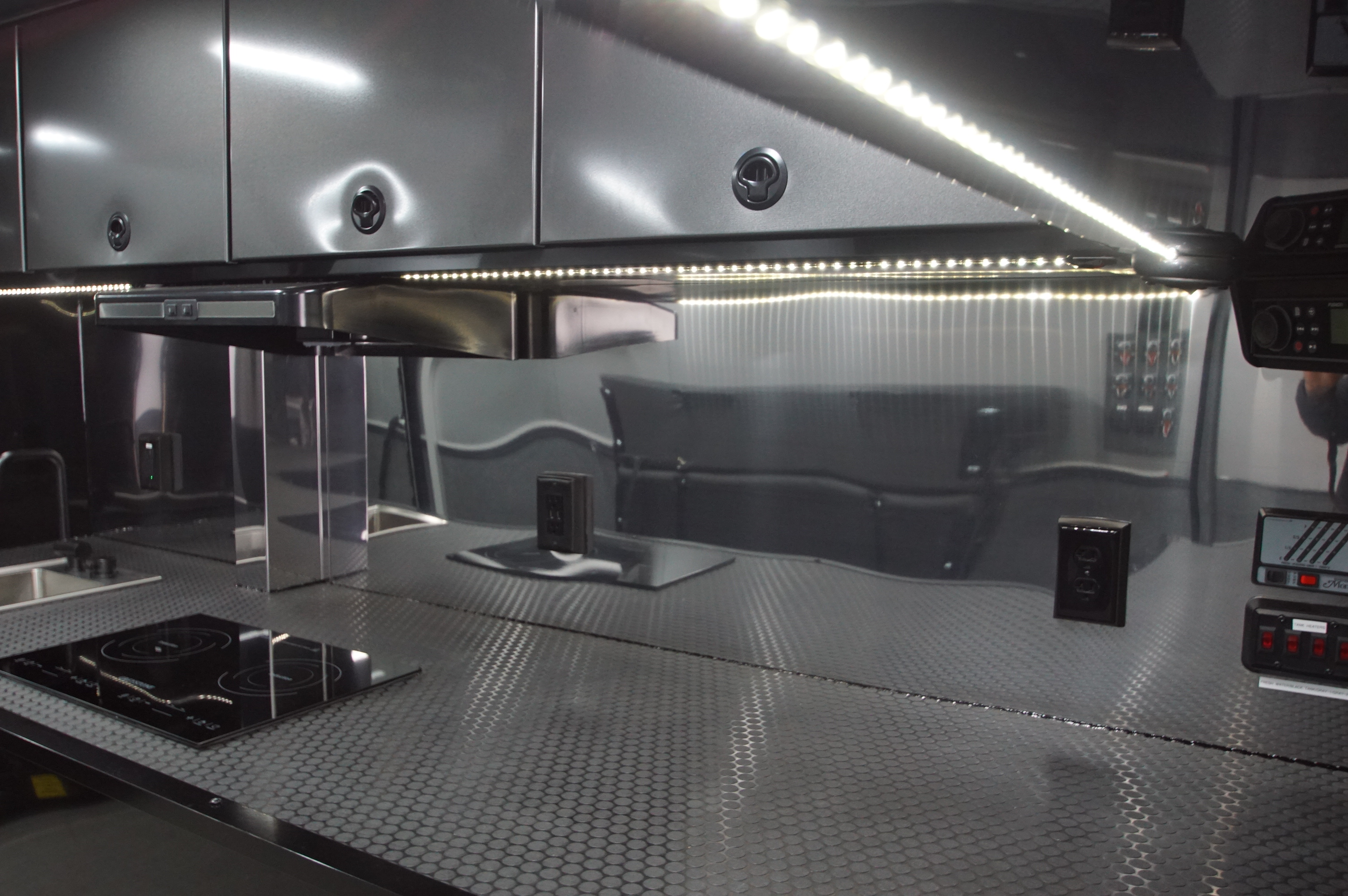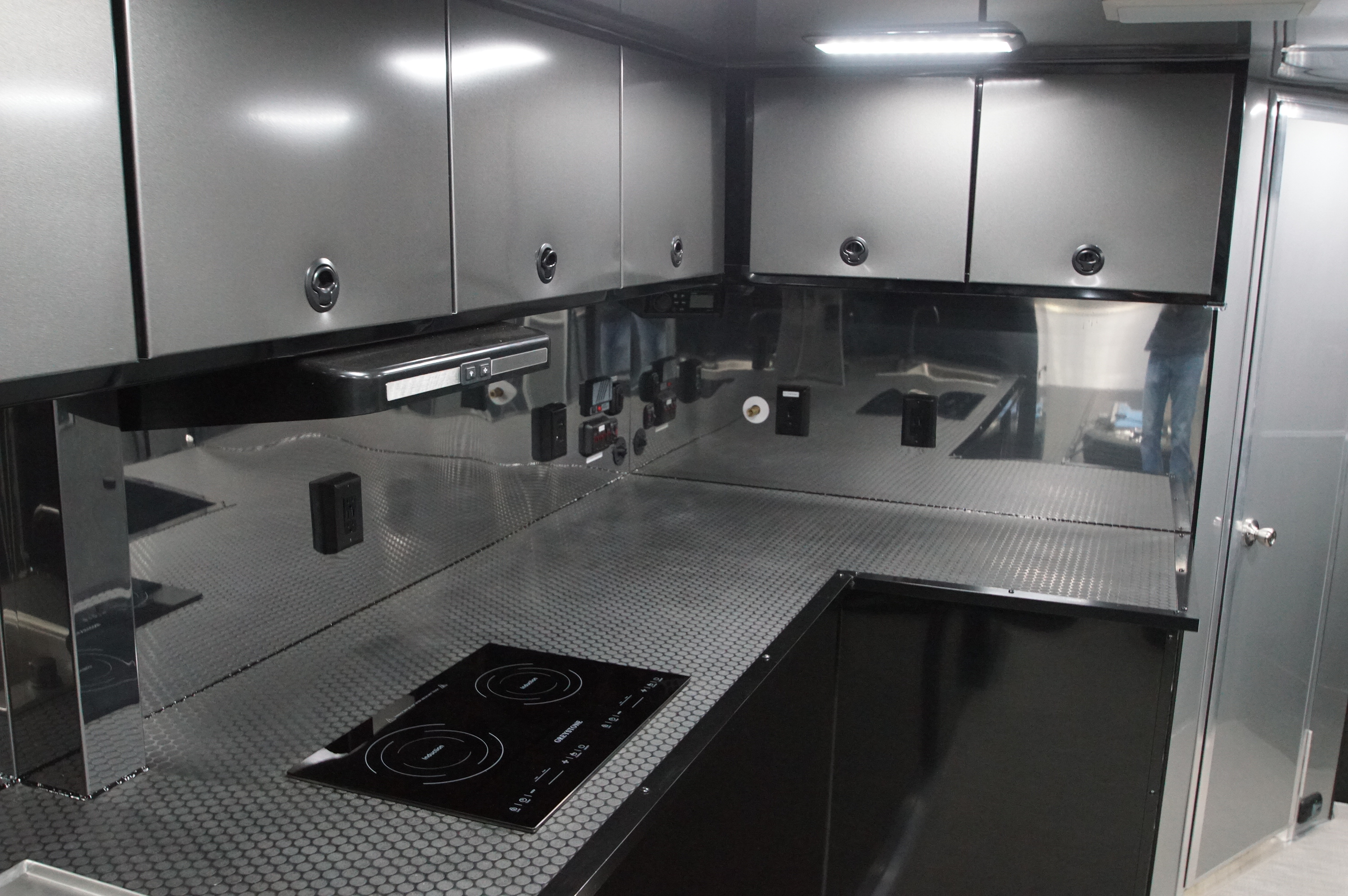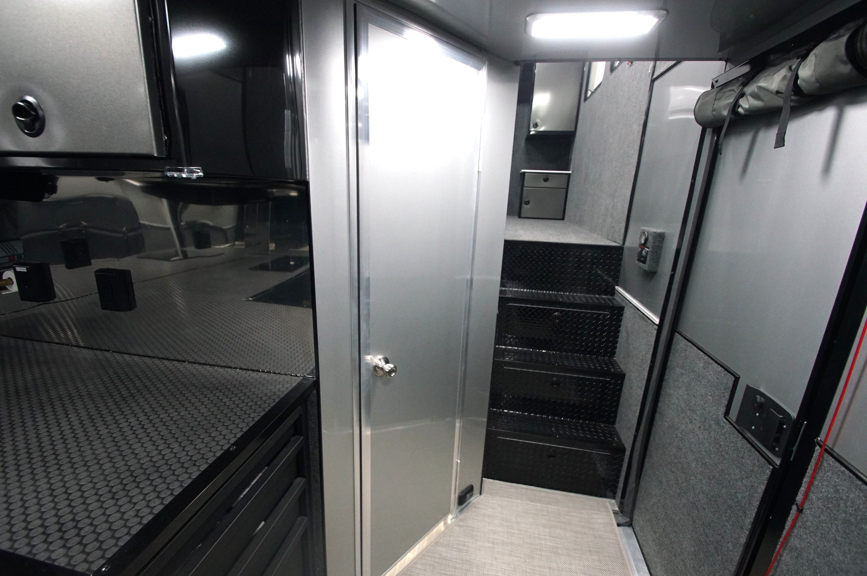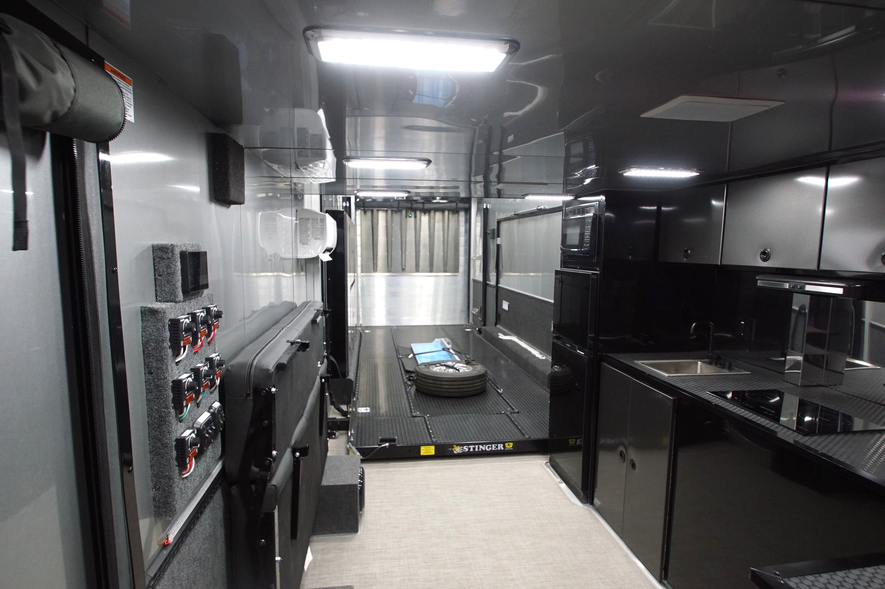 The private living quarters offer a comfortable retreat on the road, complete with a dedicated kitchenette for extended race weekends or travel. Premium finishes and a smart layout create a refined, functional space that feels elevated and practical.