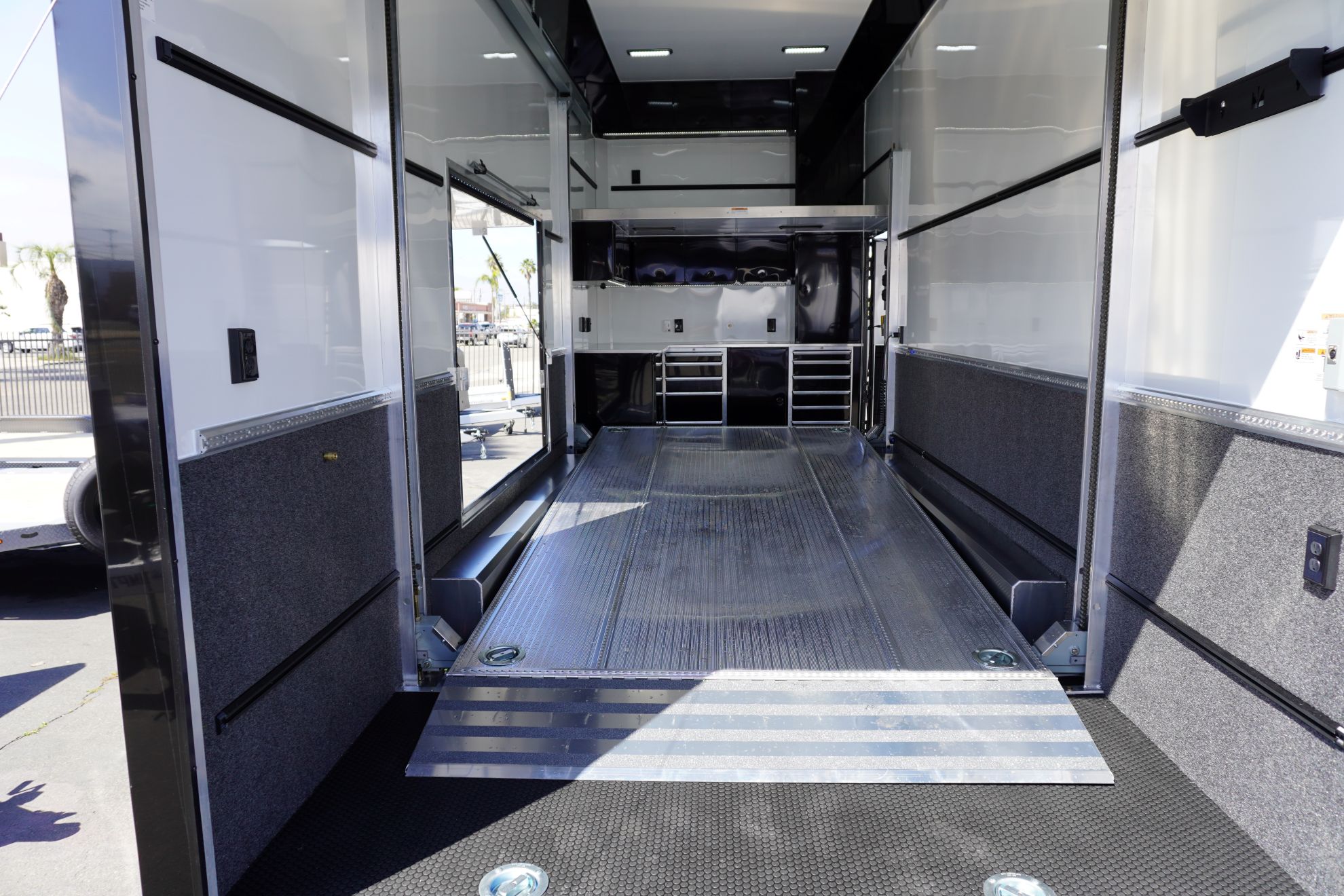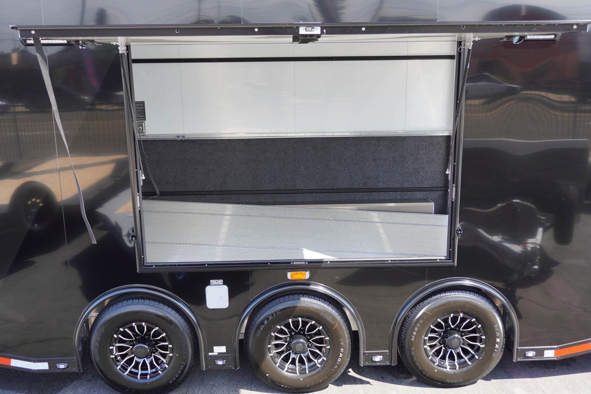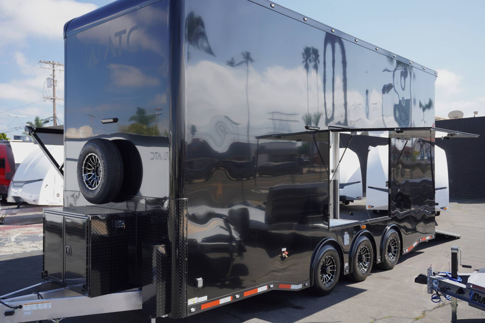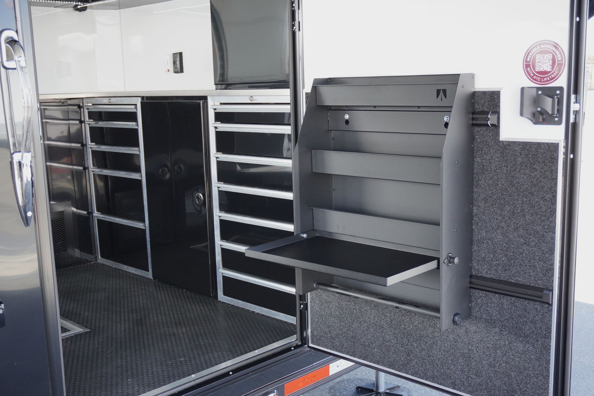 The ATC ROM 750 Stacker is a lightweight, high-performance trailer designed for racers and enthusiasts who demand efficiency and functionality. Weighing just 8,600 lbs, this stacker maximizes hauling capability without sacrificing durability. It features a tilt lift system for easy vehicle loading, along with integrated tool drawers, onboard water, and storage cabinets to keep your equipment organized at the track or in the paddock. Built with ATC’s all-aluminum construction, the ROM 750 delivers strength, reliability, and smart storage in a lightweight stacker designed to perform.